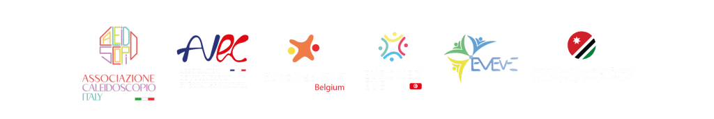 The consortium is comprised of: Caleidoscopio Association – Italy (Coordinator), AVEC – France, EUROMED EVE – Belgium, EUROMED EVE – Tunisia, EUROMED EVE – Morocco, Jordan Youth Innovation Forum (JYIF) – Jordan